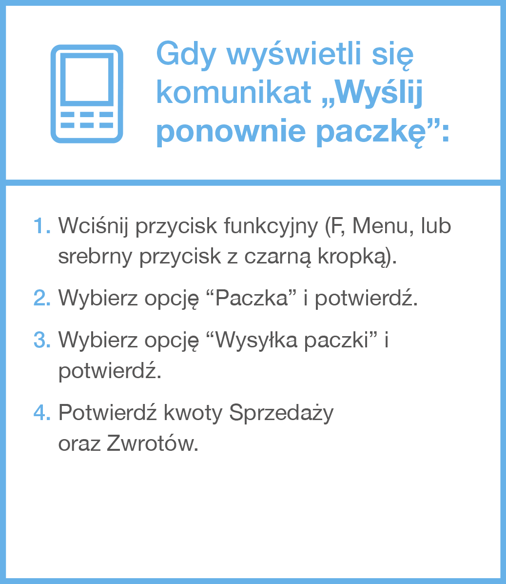 Gdy wyświetli się komunikat „Wyślij ponownie paczkę” |