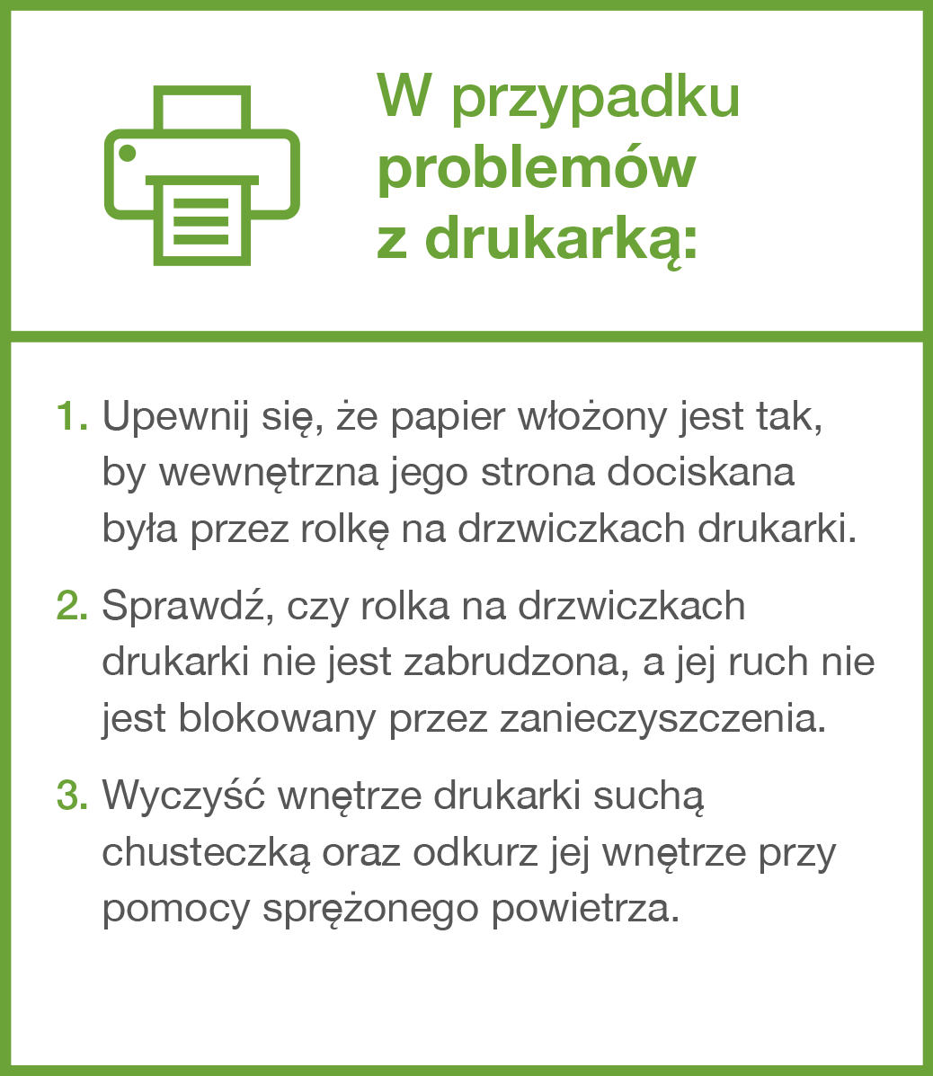 Dodatkowe materiały eksploatacyjne (np. rolki papieru termicznego) można zamówić poprzez