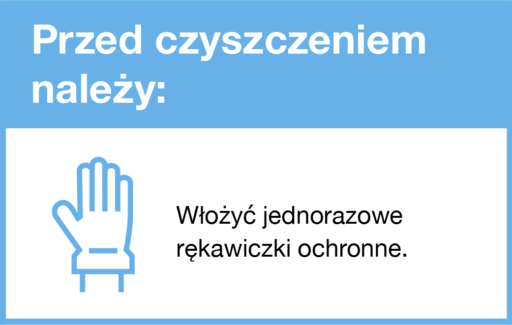 - Środek czyszczący lub dezynfekujący nanieść na kawałek czystego materiału